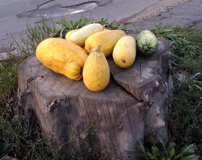 Пенек добрых дел, люди просто вынесли лишний урожай для нуждающихся. |