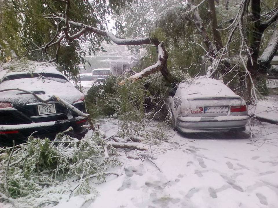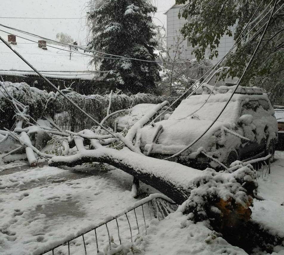 Огромные хлопья мокрого снега налипали на всём: деревьях, проводах, карнизах и пр. Деревья ломались и, как сраженные солдаты, падали, рвали провода, ломали трубы газоснабжения, били стекла окон... Частично прервалось троллейбусное сообщение. Автомобили, владельцы которых «переобули» их на летнюю резину, стали попадать в неприятные ситуации. Произошли первые дорожно-транспортные происшествия.
