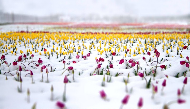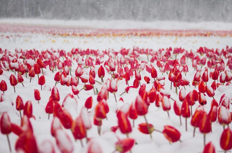 МОЛДОВА - село Бардар, тюльпаны в снегу.