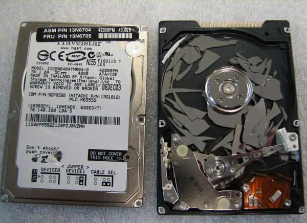 Есть некоторые умельцы, которые используют винт как флешку. Скорее всего уронили. Вряд ли бы голова (её отрыв) сделала такое.