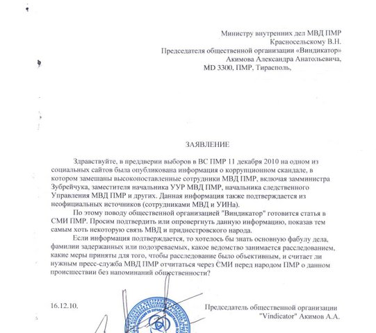 да в на форуме всплыла инфа,но что толку...был официальный запрос от общественной организации на имя Министра МВД дать разъяснения.но не где и ни что не прозвучало в СМИ ПМР,это говорит о том что данное дело не получило резонанс в обществе,не дали ему крутанутся в головах простолюдин.