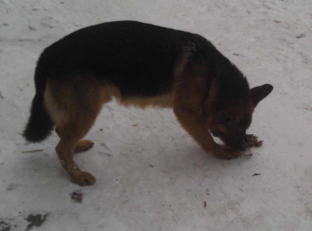 У нас по району "красные казармы" ходит вот такая бездомная огромная ухоженная овчарка, добрая, людей не трогает, но явно голодная. Дал я ей с мусорки костей. Жалко так животное ... |
