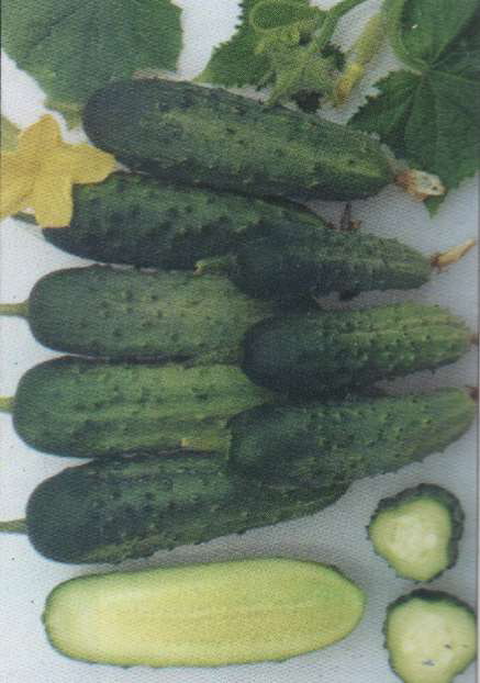 Ранний партенокарпический гибрид. Зеленцы красивые, темные, мелкобугорчатые с густым, сложным белым опушением. Отличает ся высокой продуктивностью и товарностью. Устойчив к бактериозу. Хорошо отрастает после эпифитотии пероноспороза. Пригоден для летнего посева. Предназначен для маринования и засолки. Может использоваться для выращивания в открытом грунте и весенних пленочных теплицах.