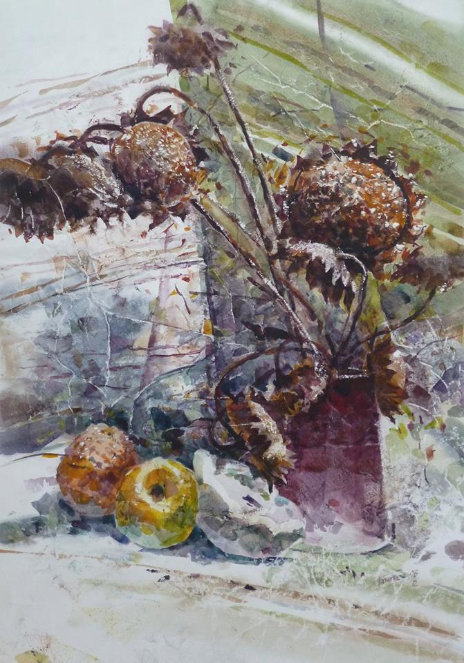 Натюрморт с сухими подсолнухами бум. акв. 40х56 12г |