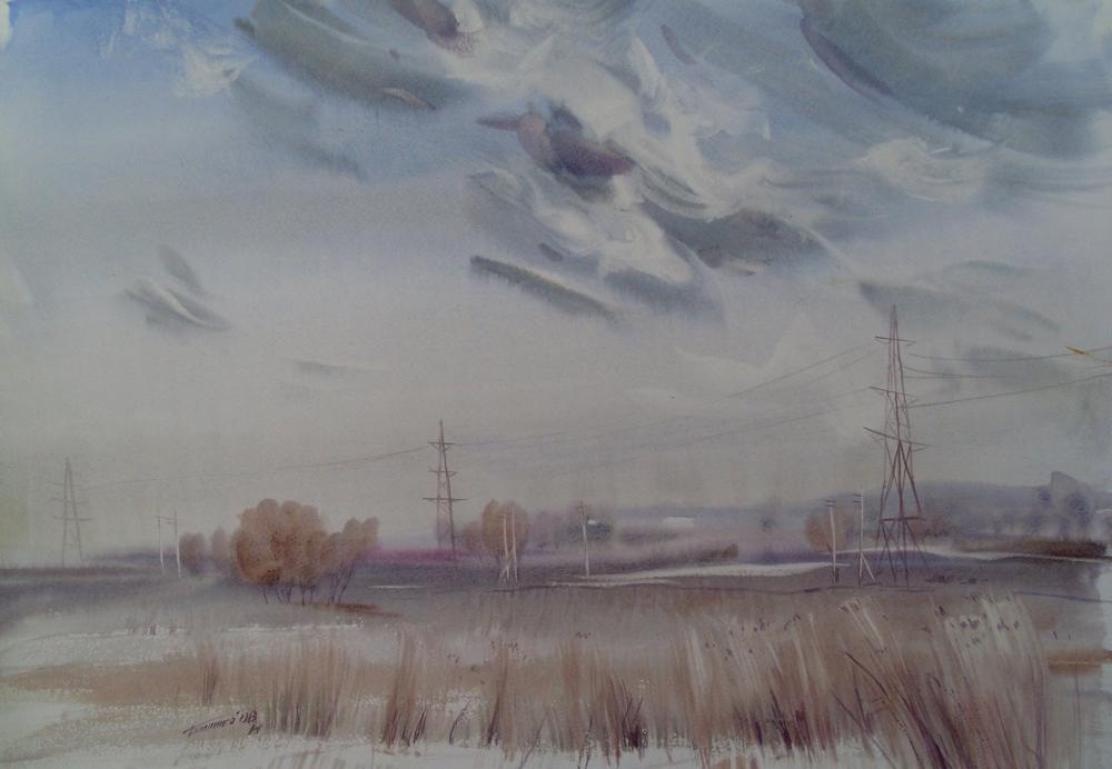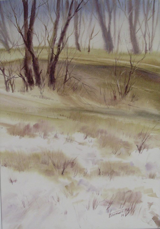 "Весна близко" бум. акв. 40х56, 2014 г. "За городом" бум. акв. 40х56 14г |