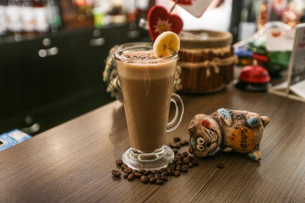 Калорийность на 100грамм: 70Ккал Б/Ж/У - 2.49/1.92/11.74 Ингредиенты: - 150 гр заваренного черного кофе (около 1/2 большой кружки) - 1 банан (100 гр) - 20 гр овсяных хлопьев - 1\4 чайной ложки молотой корицы - 1\4 чайной ложки молотого мускатного ореха - 1 ч.л. какао (5 гр) - 100 гр молока (жирность не выше 2,5 %) Приготовление: Все ингредиенты взбиваем в блендере в течение 5 минут (чем дольше взбивать любой смузи, где есть банан и овсянка, тем пышнее он получится) |