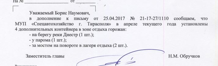 Вот пришел положительный ответ! Контейнеры для мусора на берегу Днестра установят. Дополнение - пришло 10 мая.