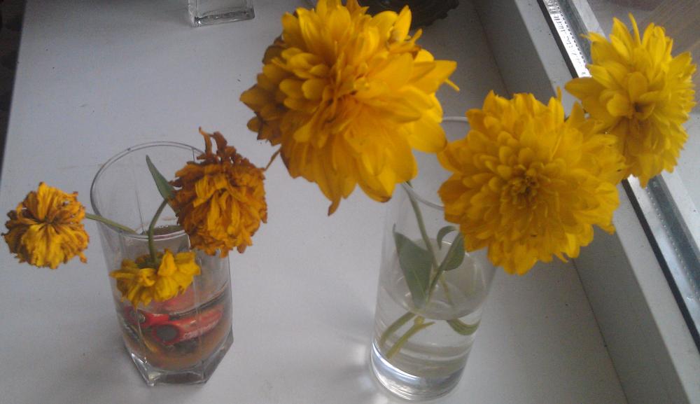 Я же специально поставил рядом два стакана - и видно, чтос батарейками цветы вянут очень быстро.