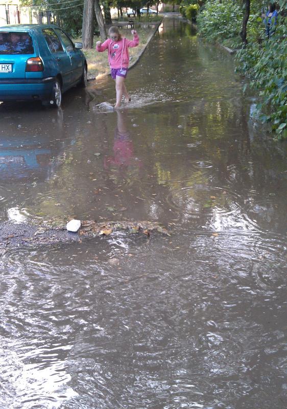 Ничего так прошел ливень в Тирасполе. Вот какие улицы после дождя. Кстати, и радуга на всё небо была. |