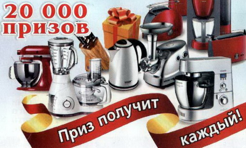 С 15 ПО 28 АПРЕЛЯ - Акции в Шерифе! С 15 по 28 апреля в каждом супермаркете «Шериф» при покупке одним чеком продукции "ЯМУНА" и "IRIS" на сумму 50 рублей и более предоставляется возможность участвовать в лотерее и выиграть ценные призы: кухонные комбайны, миксеры, электрочайники, блендеры, фирменные футболки, наборы ножей и другие призы. Условия акции - один чек дает возможность участвовать в акции только один раз. Розыгрыш призов будет осуществляться в каждом супермаркете «Шериф». |