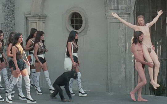 ммм, парень несущий свое изображение (ну есть такой самовлюбленный тип), потом девушка с обезьяной ( муж наверное, это про многих можно сказать), толпа девушек за ними...