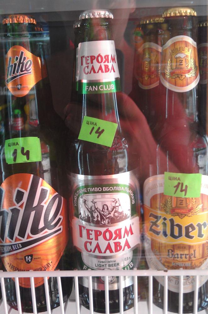 Да, вот еще ценники пива в Ильичевске в ларьке. А это эксклюзив! Пиво "Героям слава!" |