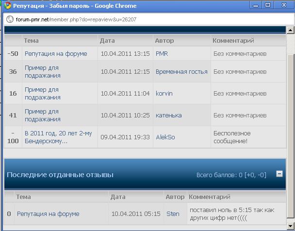 Нужна ли репутация на форуме? PMR Отзывы и предложения по форуму 31 13.04.2012 01:31