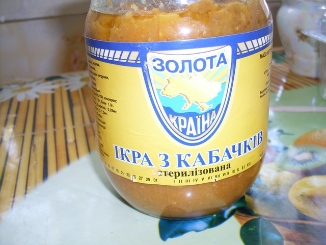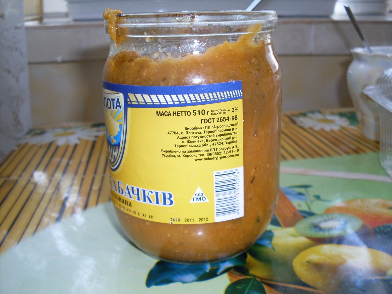 Икра кабачковая куплена за 10,25 руб. в "7дней" На поверхности слой масла, пахнет подсолнечным. На вкус жесткие вкрапления, наверное перемололи кабачки вместе со стручками и кожурой. В толще видны черные вкрапления неопознанного состава.