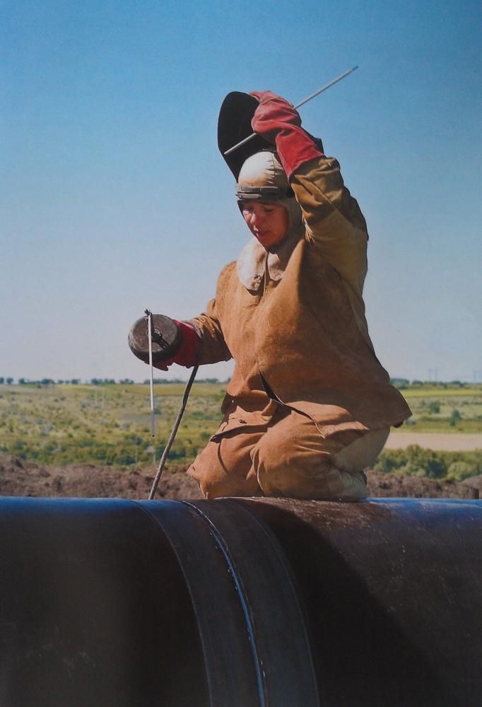 На реконструкции газопровода АТИ работает Татьяна Гусачук, сварщица "Нефтегазстройизоляция". |