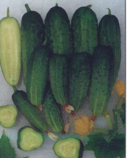 Родничок Гибрид среднеранний, растение среднерослое. В одном узле формируются по 2-3 плода одновременно. Зеленец зеленой окраски с белыми полосами, массой 90-100 г. Плоды без горечи, вкусовые и засолочные качества очень высокие. Зеленцы долго не буреют, хорошо переносят транспортировку. В пленочных теплицах урожайность 17-23, в первый месяц плодоношения - 6-8 кг/м2. Выход товарных плодов - 97-98%. Наиболее распространенный во многих зонах. Его успешно выращивают долгие годы из-за превосходных вкусовых качеств фермеры и овощеводы-любители. |