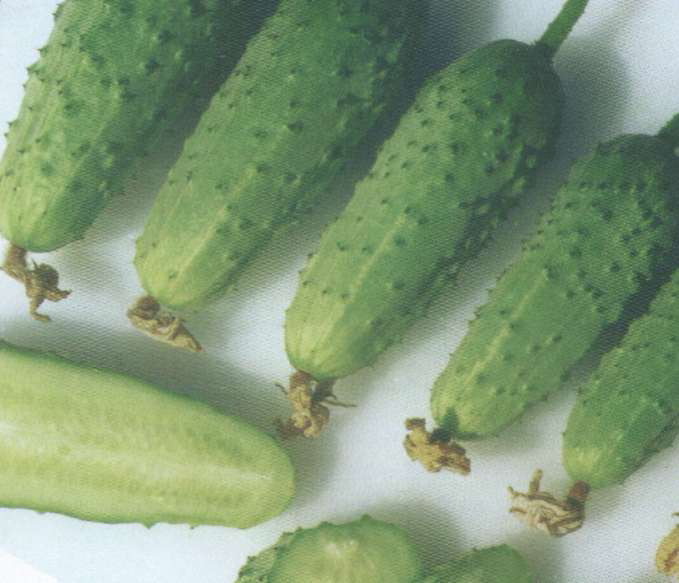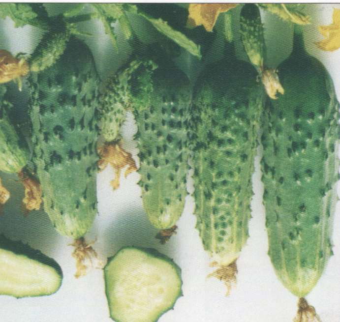 Газель Среднеранний гибрид, преимущественно женского типа цветения, с высокой стабильной урожайностью. Мощное растение с прекрасной регенеративной способностью. Плоды светло-зеленые, черношипые, длиной 9-11 см, цилиндрические. Отличается высокими вкусовыми качествами при потреблении в свежем виде и в засолке. Вынослив к бактериозу и мучнистой росе, устойчив к пероноспорозу. Выращивается в открытом грунте и пленочных теплицах. |