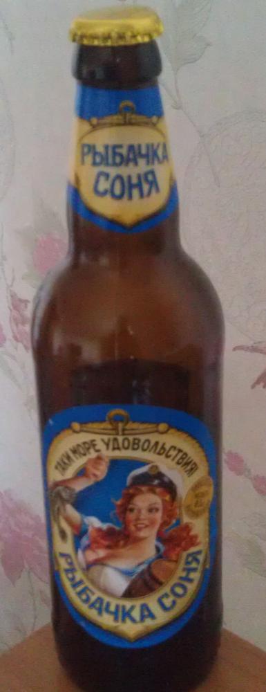 Неплохое и очень дешевое пиво за 12 гривен - "Рыбачка Соня". Бутылка оформлена по одесски )). |