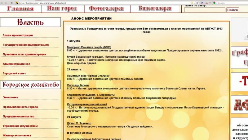 Печально, но анонс про гастрольный спектакль я случайно видела вчера на сайте Госдаминистрации Бендер: http://bendery.pmr-gov.org/anons-afisha.html
