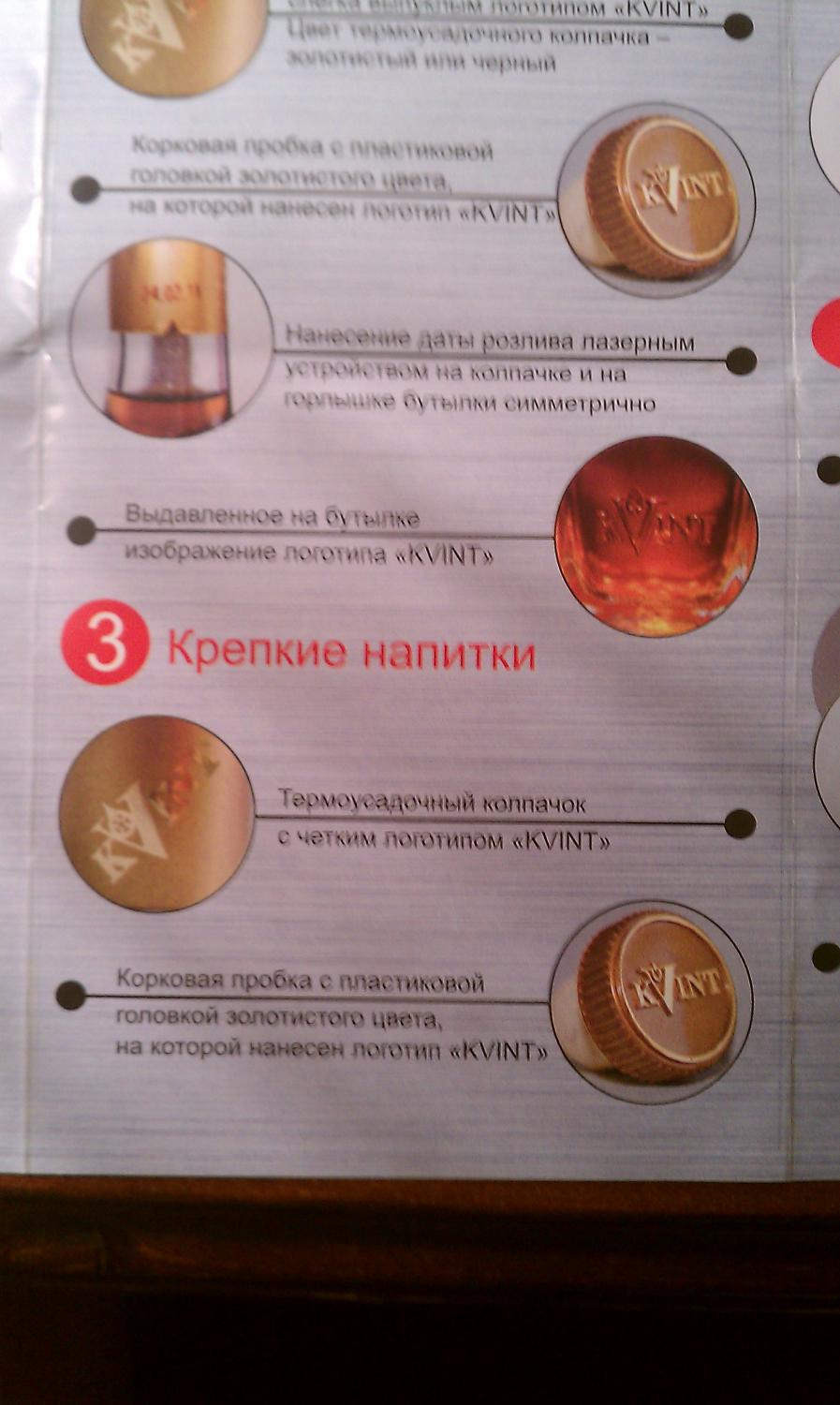 1 Дешевые спиртные напитки нет смысла подделывать.Большие расходы на стекло,этикетку и спирт. 2 Если вам не нравиться вкус дешевого спиртного то вот вам совет:дешевую водку надо пить,что бы нажраться в сиську,а не что бы смаковать. 3 Если вы хотите действительно узнать вкусы коньяков,вам стоит записаться на дегустацию.Там с вами экскурсию проведут,и коньячками напоят и объяснят как правильно пить и чем закусывать. 4 Если вас смущает качество или вид алкогольной продукции,купленной в магазинах "Квинт" или "Квинт-Маркет" то:сохраните чек и обратитесь на центральную проходную ТВКЗ "Квинт".Вас внимательно выслушают и сделают все,что бы удовлетворить ваши запросы. 5 Специально для переживающих о фальсификате выкладываю пару фото,основных признаков фирменной продукции "Квинт": В каждом фирменном магазине Квинт есть брошюра о фальсификате,можно с ней ознакомиться. Последний раз редактировалось Zv1978; 15.01.2012 в 19:09. |