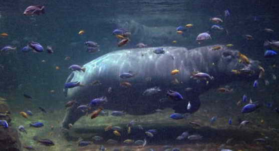 Бегемот в воде.