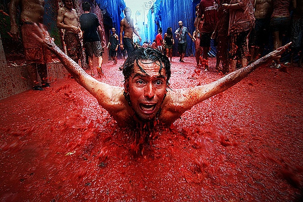 уже не первый год хочу попасть в Буньоль , на фестиваль томатов . Вот его описание из википедии ))) Первые события Ла Томатины начинаются с 10 часов утра. Множество грузовиков, гружённых помидорами въезжают на центральную площадь города Плаза-дель-Пуэбло. Томаты везут из соседнего автономного сообщества Эстремадура, где они дешевле. По правилам фестиваль начинается только после того, как кто-нибудь залезет на деревянный столб высотой в 2 этажа, предварительно смазанный мылом. На верху столба смельчака ожидает свиной окорок (хамон). Сигналом к началу боя служит выстрел из водяных пушек. В процессе сражения каждый участник сам за себя. Правила требуют, что для избежания травм перед броском помидор должен быть раздавлен. Также по правилам нельзя приносить с собой предметы, способные нанести серьёзные повреждения, например, стеклянные бутылки. Хаос длится ровно час, после чего водомёты делают второй залп, подавая сигнал к завершению сражения. После этого момента помидорами бросаться больше нельзя. После битвы стены окружающих домов становятся красными, а томатная жижа на мостовой доходит до щиколоток. В процессе очистки пожарные автомобили смывают остатки томатов водой, которая подаётся из римского акведука, проходящего к северу от города. Участники отмываются в реке, или их окатывают из шлангов местные жители. в общем ПОКИДАТЬСЯ ПОМИДОРАМИ ХАЧУ !!!!!!!!!!!!! )))))))))))))) |