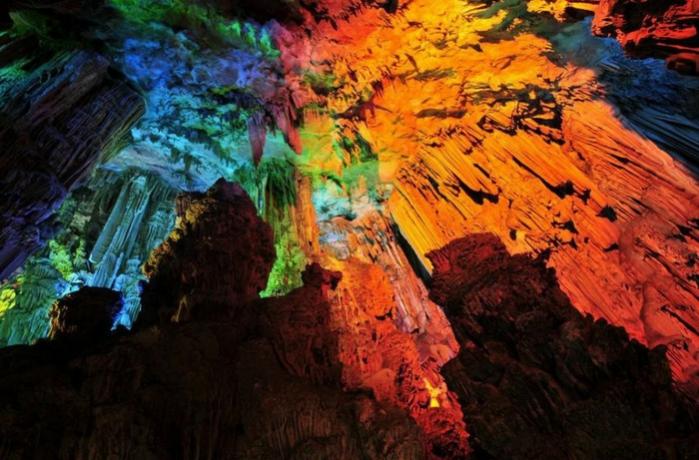 Одна из самых роскошных пещер Китая, огромная, похожая на декорации к фэнтэзи, обладает невероятным залом с подземным озером, где любая фотография напоминает тщательную обработку в фотошопе. Но здесь - это абсолютная реальность. источник:http://www.joker-6.ru/post293898565/