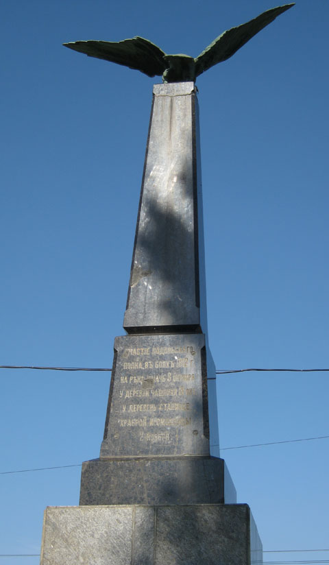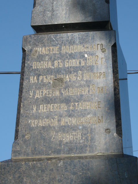 (фрагмент памятника с указанием мест сражений, в которых принимал участие Подольский пехотный полк):