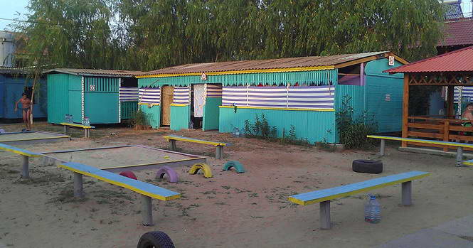 Еще есть нормальные деревянные домики с туалетом и водой внутри за 360 гривен за домик, в нем 3 места.