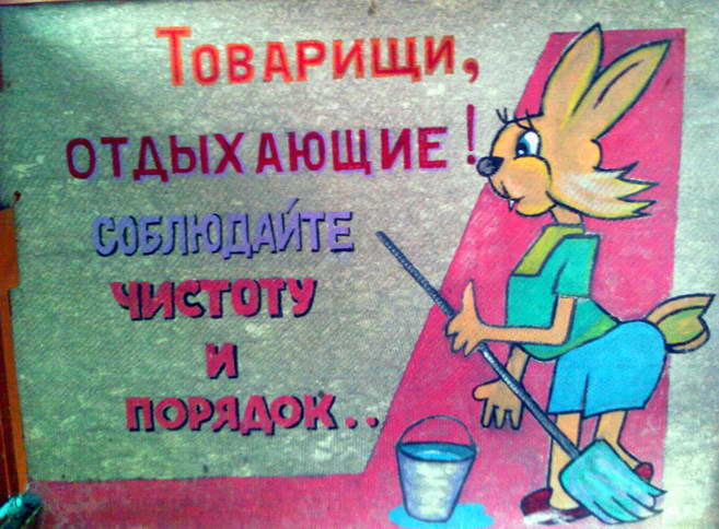 Надпись о чистоте времен СССР рядом с умываьником напоминает, что ты как-бы попал в прошлое. Но зато мусор сортируется на обычный и пластиковый!