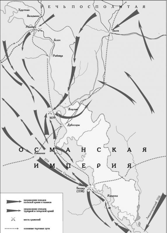 ПРИДНЕСТРОВЬЕ ВО ВТОРОЙ ПОЛОВИНЕ XVIII ВЕКА Всю вторую половину XVIII в. Приднестровье было в центре европейской политики, став ареной военных действий двух русско-турецких войн. Российская внешняя политика на Балканах была направлена на вытеснение османов из юго-западных пределов европейской части русского государства. Однако наличие двух крупных крепостей — Хотина и Бендер закрывало русским войскам путь на Балканы. Безводная и безлюдная Очаковская степь не позволяла русской армии с ее обозами и артиллерией вести активные боевые действия, поэтому практически все пути войск прокладывались через Приднестровье. В 1769 г. на южных границах России сложилась неблагоприятная обстановка. В Украине продолжалась гайдаматчина. На Подолии поляки образовали военно-политическое объединение — Барскую конфедерацию, которая активно включилась в антирусскую политику. Конфедераты послали в Каушаны к хану своих послов, побуждая татар к началу военных действий. В марте 1767 г. русская армия вошла в Правобережную Украину. Ослабление Речи Посполитой позволило России выступить защитником прав диссидентов (не католиков). Под давлением Екатерины II польское правительство пошло на подписание 24 февраля 1768 года договора о равноправии диссидентов с католиками. В качестве гаранта договора выступила Россия, что давало ей формальное право вмешательства во внутренние дела Речи Посполитой. Турки искали повод для начала войны. В середине июня 1768 г. отряд гайдамаков, преследуя польских конфедератов, напал на Балту. В результате нападения примерно около 2 тысяч татар и турок были вырезаны. Летом этого же года под Дубоссара- ми переправилась 40-тысячная армия Али-паши с целью продвижения в глубь Украины. Русское командование направило за Буг кавалерийские отряды, которые нападали на тылы турецкой армии, а в августе 1769 г. майор Зорич захватил Дубоссары и сжег их. В сентябре в Приднестровье появилась татарская конница, направлявшаяся в Бендеры. Вслед за ними в Приднестровье вошел отряд под командованием X Витгенштейна. 4 октября 1768 г. Турция объявила России войну. Первая русская армия (около 90 тысяч человек) под командованием генерал-аншефа А. М. Голицына в апреле 1769 г. осадила Хотин. Северное Приднестровье оказалось в непосредственной близости от театра военных действий. В октябре 1769 г. Хотин был взят. К этому времени А. М. Голицына сменил генерал-майор П. А Румянцев. Задачами Второй армии было взятие Бендер и прикрытие южных границ России. Часть Второй русской армии под командованием П. Панина, пройдя от Балты вдоль реки Ягорлык, 28 июня вышла к Днестру между его устьем и Дубоссарами. На правый берег были направлены команды легкой кавалерии — гусары и казаки. Отдельные отряды приблизились к Бендерам, переправившись через реку Бык. В В это же время Панину донесли о вспыхнувшей на Правобережье Днестра холере и чуме. Понимая всю ответственность за армию, он послал запрос в Санкт-Петербург, откуда вскоре получил распоряжение следовать намеченному плану. 29 июня, несмотря на отсутствие понтонов, армия начала переправу. 6 июля основные силы армии начали движение к Бендерам. В это же время через Дубоссары к Бендерам был отправлен отряд под командованием М. Ф. Каменского. Уже 5 июля начались столкновения с турками, пытавшимися противодействовать русской армии. Отразив все 
