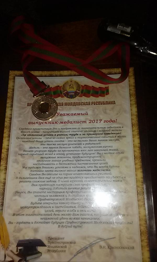 Сын окончил 11 классов с золотой медалью