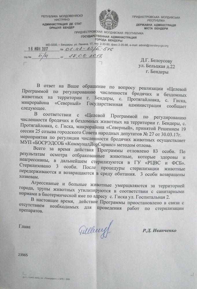 Отписались. Стерилизовано аж 3 особи, остальных - к стенке.