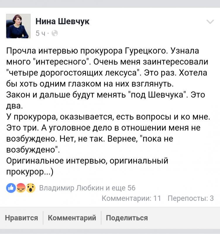 Нина Штански прокомментировала на ФБ интервью с прокурором:
