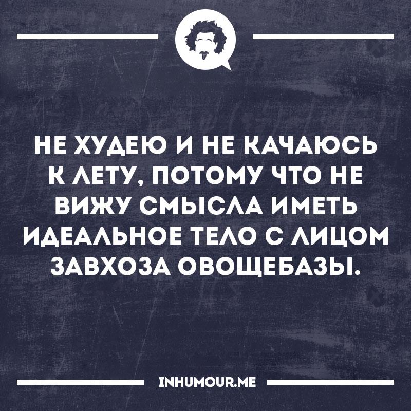 - носить УДОБНУЮ одежду: не раздражающую кожу, нигде не перетягивающую и не сдавливающую, достаточно лёгкую в жару и достаточно тёплую в холод - носить УДОБНУЮ обувь: не сжимающую пальцы как в тисках, не деформирующую стопу - хорошо и разнообразно питаться, пить достаточно жидкости - высыпаться - побольше двигаться, чаще бывать на свежем воздухе - стараться избегать стрессов - регулярно принимать душ и подстригать ногти, чтобы под них не забивалась всякая бяка Что понимает патриархат под словосочетанием "ухаживать за собой" (вкратце)? - макияж, как минимум - "естественный" - маникюр, как минимум френч - причёсочка от парикмахера - брови от визажиста - "элегантная" (=неудобная) одежда и обувь - никаких волос на теле ниже бровей - питаться исключительно салатами, чтобы "держать фигуру" и другие практики разной степени вредности для физического и психического здоровья. |