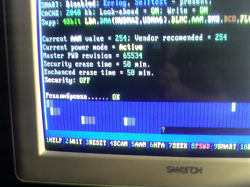 Вообщем история такая мне подогнали убитый винт на 80 Гб samsung. Как его подкинули( убили ) мне особо не обьясняли. Вообщем сказли что как-то люди его смотрели и одно из их утвержением было то что клинел шпиндель вращения диска, а кантролер живой. Мои дествия. Снял контролер почистил контакты между контактами. Аккуратно разобрал его. Посмотрел не сорвана ли головка. На мое счатье она в норме. Шпиндель вращался как му было положенно и не каких посторних предметовтам не ло и не клил при врщеннии. Сорал его. Подключил. Отлючил в биосе. Поставил тест на проверку повержности HDD Викой результат не заставил себя долго ждать в вначале преобладали дефекты AMNR и UNCR. Заличив это все дело винт зашуршал как положенно. Сразу попытался его переразбить. при создании раздела акроникосм он выдал ошибку. Попробовал проверить еще раз викой но дефектов НЕТ!!! Гружусь опять же акрониксом Он мне пишет ОШИБКА ЧТЕНИЯ СЕКТОРА № ############ на диске 1. ТАК ЖЕ ВЫКЛАДЫВАЮ ФОТО ВНИМАНИЕ !!! Уважаемые пользователи не пытайтесь это повторить сами. Не пытайтесь слущать чьих то советов. Если у вас нет определнных зниний и опыта. Не в коем случае не разберайте винты и не ковырйте их !!! Собственно фото