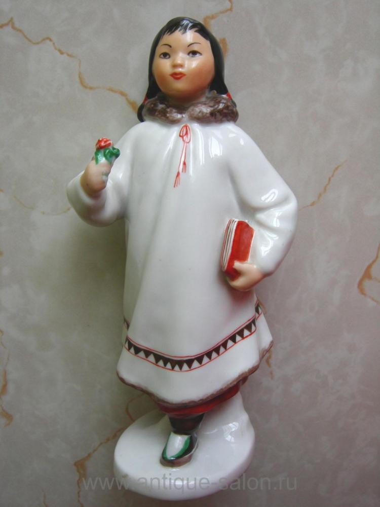 на днях посчастливилось заполучить почти шедевр, статуэтка ЛФЗ "Девочка якутка с цветком", она настолько искусно сделана что просто умиляешься.