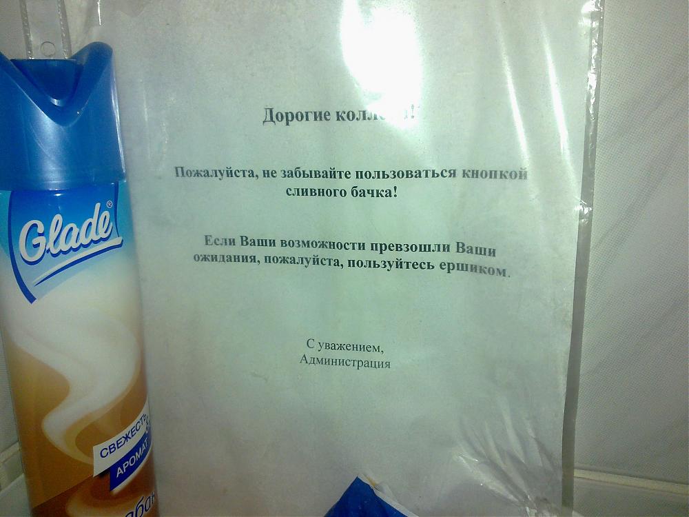 Такая надпись была в туалете Комсомолки,не оттуда утянули
