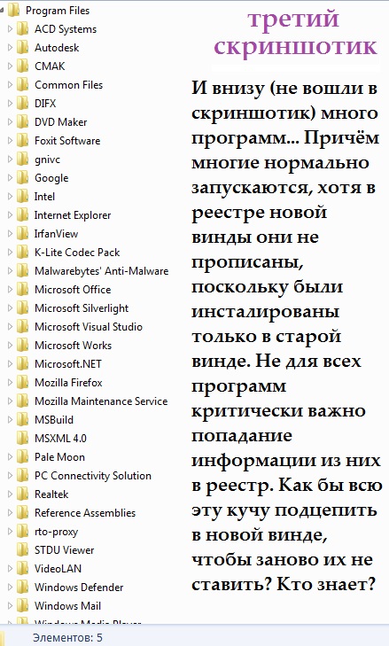 хочу ускорить установку программ на новую Windows 7 используя остатки старой Windows 7. Прошу помочь Знатоков! В папке Windows.old осталась папка Program Files и папка Пользователи. Возможно ли, используя информацию из остатков старой Windows 7, ускорить работу, не устанавливая все программы на новую Windows 7 с нуля?