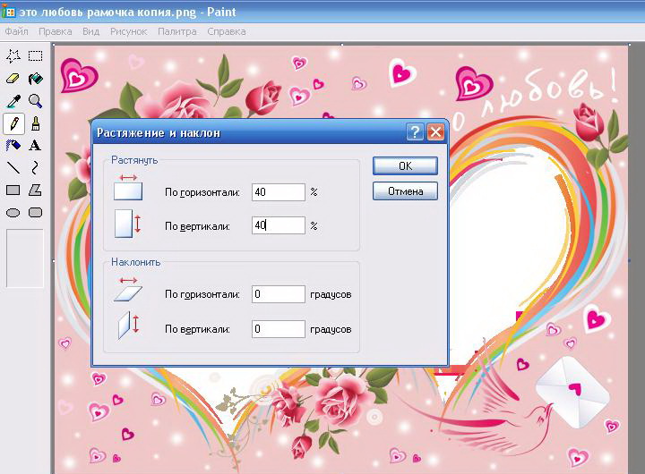 Открываете ваше фото в Paint, нажимаете Ctrl+W. Далее в появившемся окошке в первых двух графах выставляете одинаковое значение, чаще всего 40 и нажимаете ОК.
