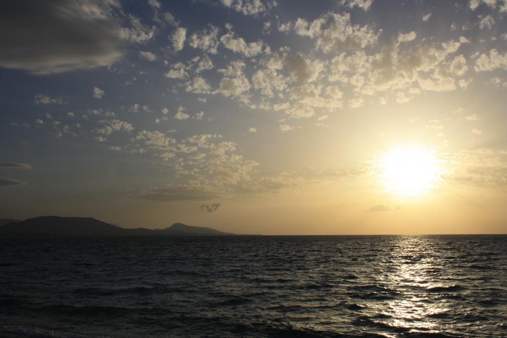 Если на эгейском побережье встать лицом к морю, то солнышко будет греть спинку, а если также встать на средиземном побережье, то солнышко будет светить в лицо. )))))