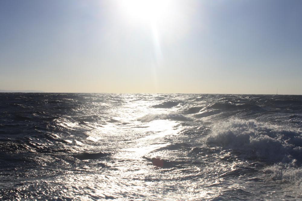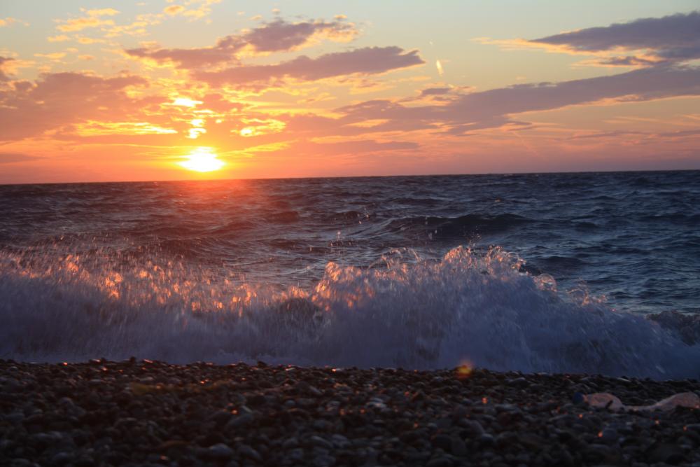 Что интересно , вода на эгейском море никогда не была спокойная, всегда били огромные волны. Побережье галька – а вот вода зато изумительной красоты. Я первый раз видела подобное , вода у побережья ( примерно 5-8 метров) была светло зеленая или голубая, а дальше темно синяя, как буд-то её четко порезали на куски .