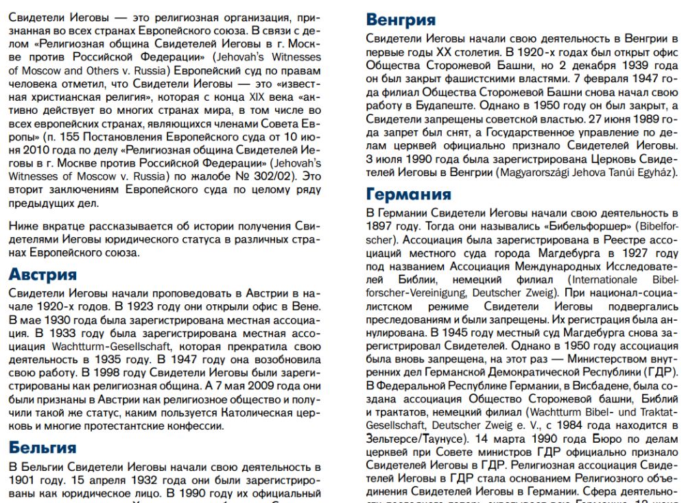 Юридический статус Свидетелей Иеговы в странах Европейского союза. Краткий обзор.