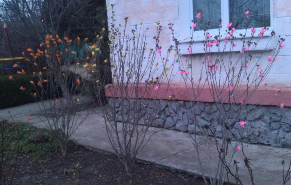 В садике кусты зацвели зимой - бумажными цветочками. |