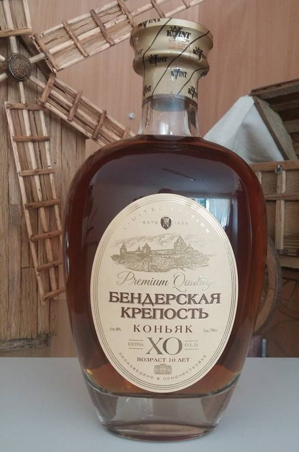 В магазин Бендерской крепости поступил эксклюзивный коньяк "Бендерская крепость", производства завода КВИНТ. Цена - 300 рублей ПМР. Выдержка - 10 лет! Возраст, указанный на бутылке, это минимальный! возраст коньячных спиртов, используемых в купаже, а подборка спиртов может быть разная. |