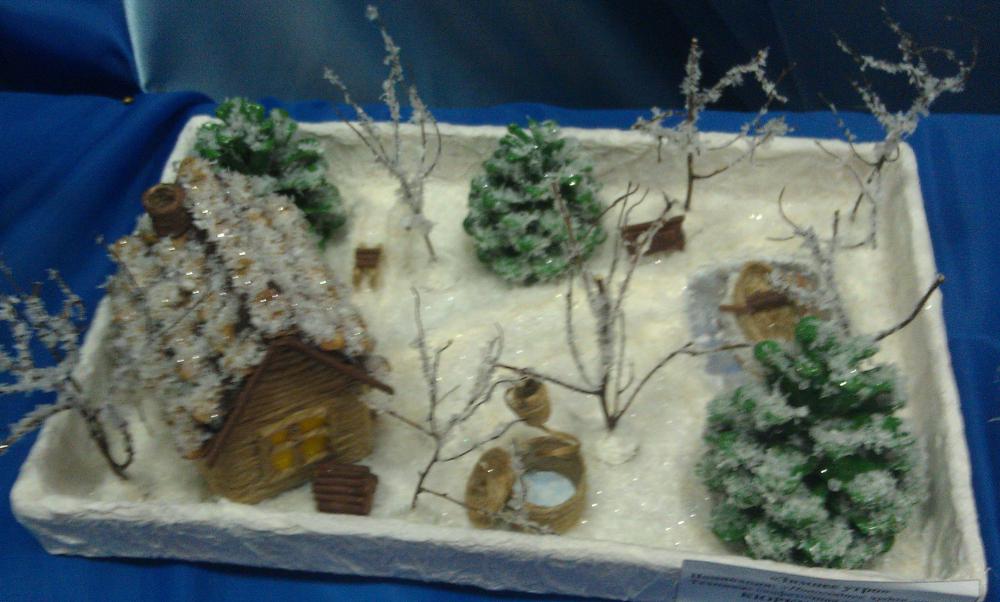 "Зимнее утро", салфеточная техника, джут, Кюркчю Мария , 8 лет, ТСШ №5, 2-Б класс.
