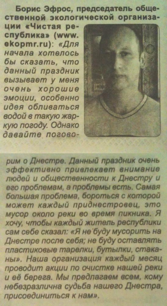 Balashiha-RUS, ну, если уж разобраться, то 6 несуществующих ГРЭС, к обмелению Днестра отношения не имеют, я говорила о ДВУХ существующих (на диктофон), а после добавила, о проблеме которая волнует Молдову, Украину и Приднестровье - планирование строительства 6ти ГРЭС в Украине.. но, видимо мой словесный поток надо было уложить в какие-то газетные рамки, поэтому уже по своему сократили)
