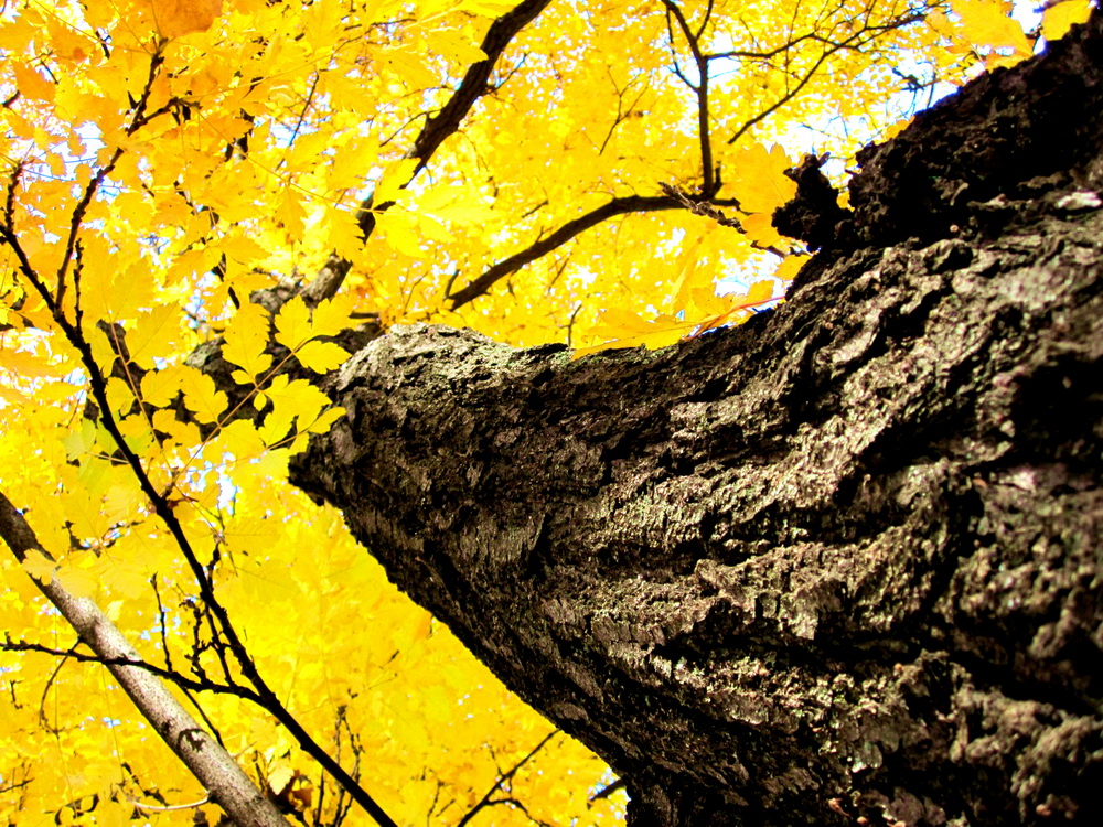 Осенью можно жмуриться, прижавшись щекой к теплому стволу дерева.