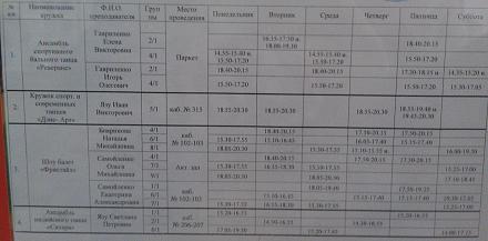 Расписание работы детских кружков в ДДЮТ.