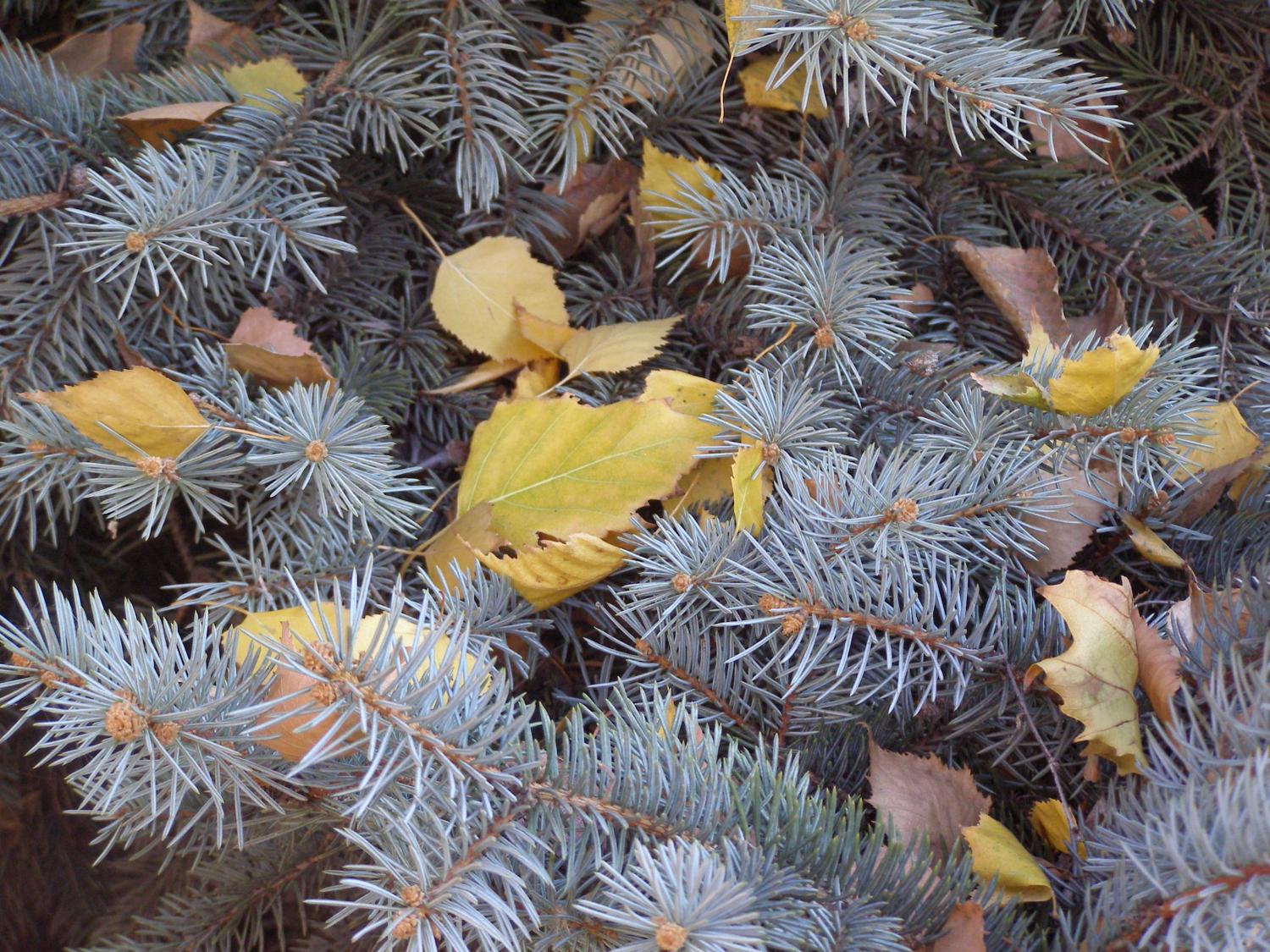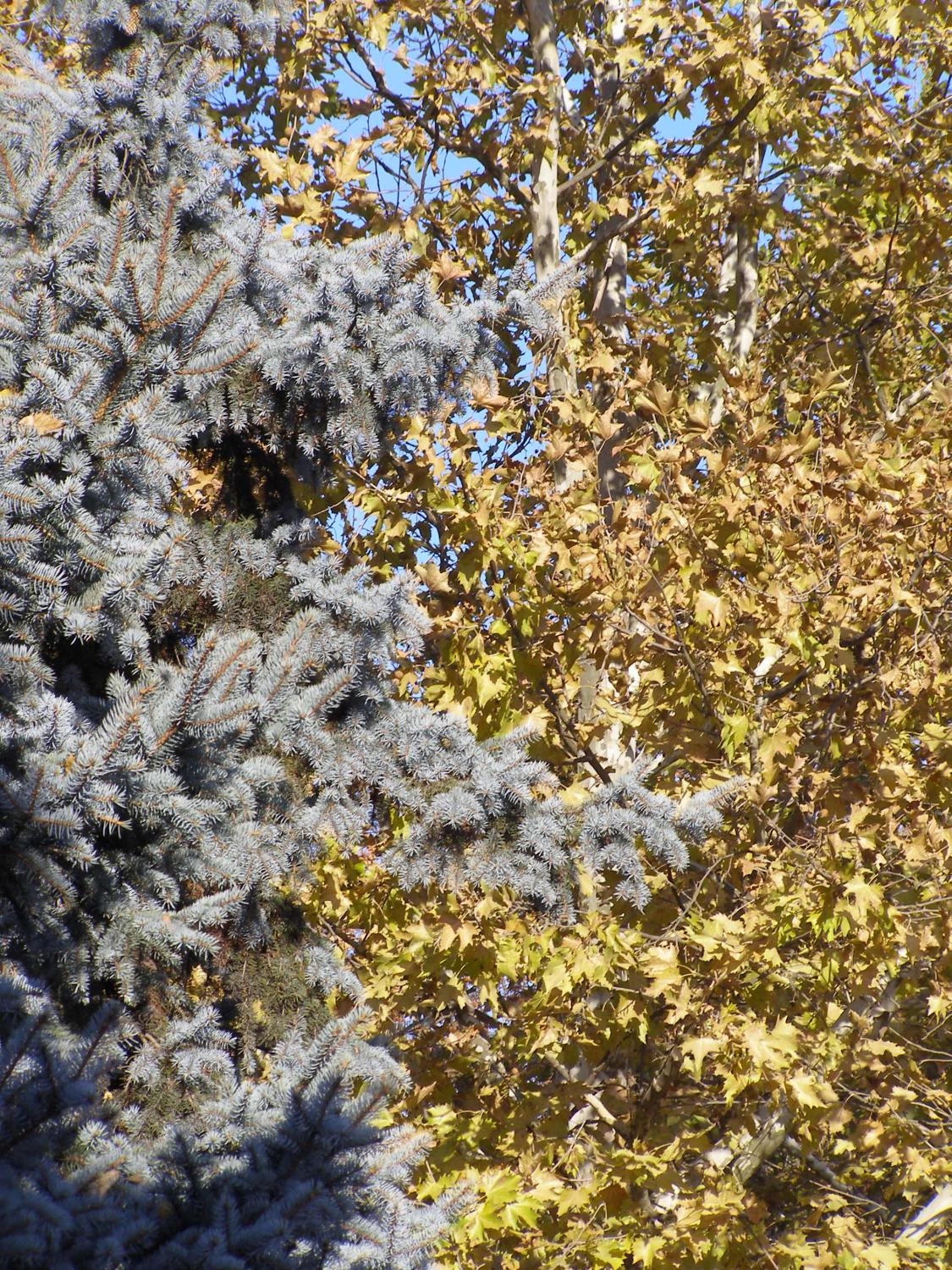 Сочитание ели и осенней берёзки....Очень нравится....